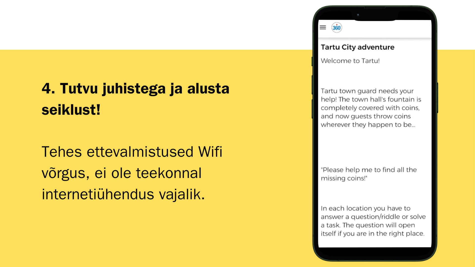 Siin on samm-sammult juhis mängu aktiveerimiseks Tartu näitel: